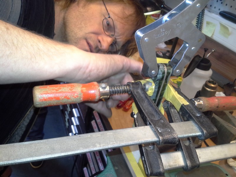 - Anpassen der Griffschalen an die Klingenangel / Vorschleifen der Klingenkonturen (flach, hohl oder ballig).
