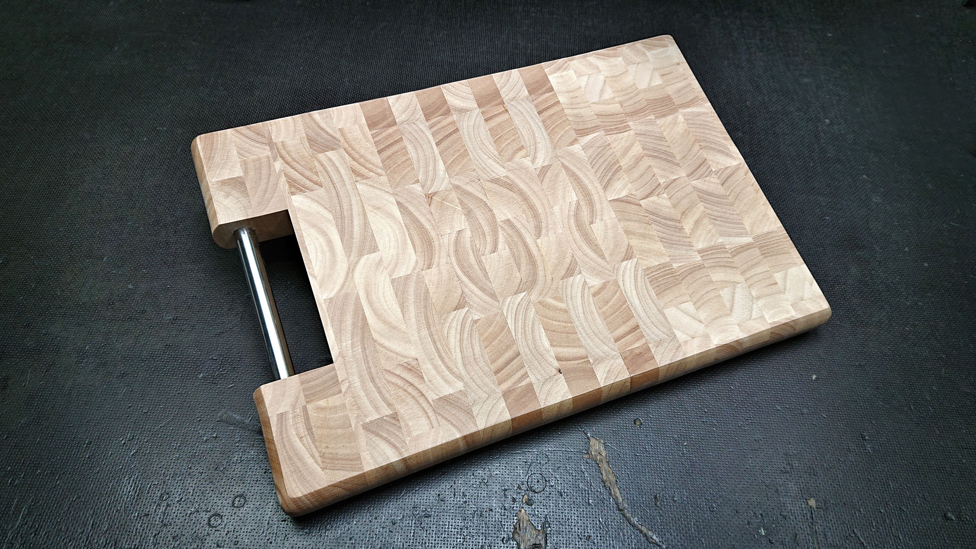 *Stirnholz, auch Hirnholz oder Kopfholz genannt, bezeichnet eine Art der Herstellung von Holzprodukten. Der größte Unterschied zur herkömmlichen Verarbeitung liegt in der Anordnung der miteinander verleimten Holzstücke. Diese werden nicht wie üblich längs zum Holz geschnitten und wieder zusammengesetzt, sondern quer zur Faser geschnitten. Die Jahresringe, bzw. der jeweilige Teil des Rings, sind so an der Oberfläche zu erkennen. Durch die Senkrechte Anordnung der Holzwürfel ist die natürliche Bewegung vom Holz nicht mehr in der vertikalen, sondern wenn überhaupt in der horizontalen. Ein Verziehen und damit wackeln des Brettes gilt deshalb als sehr unwahrscheinlich.